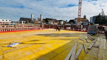 On réalise tout type de dalles : traditionnelles et avec des panneaux aluminium, peu importe la hauteur.